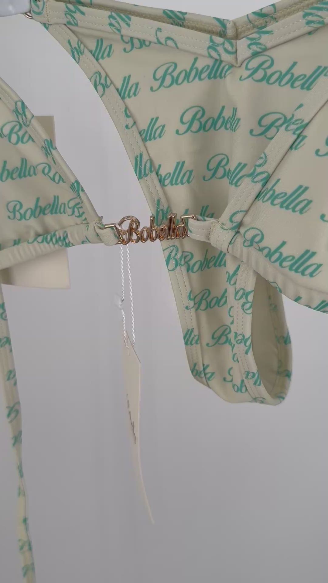 Ride the waves in style. Olas del Mar comes in a Sandy cream with ocean blue writing. The signature V-cut that flatters every curve. Adjustable cups and bottoms give the perfect fit, while gold accents add a touch of luxe. Comfortable, confident, and totally effortless.